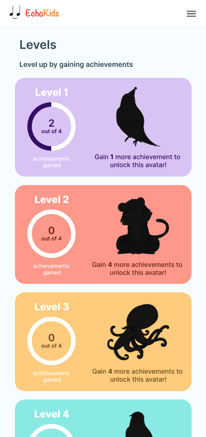 While EchoKids lessons were effective, younger students struggled to stay engaged outside of live instruction. Progress tracking felt abstract, and learning lacked a sense of reward.